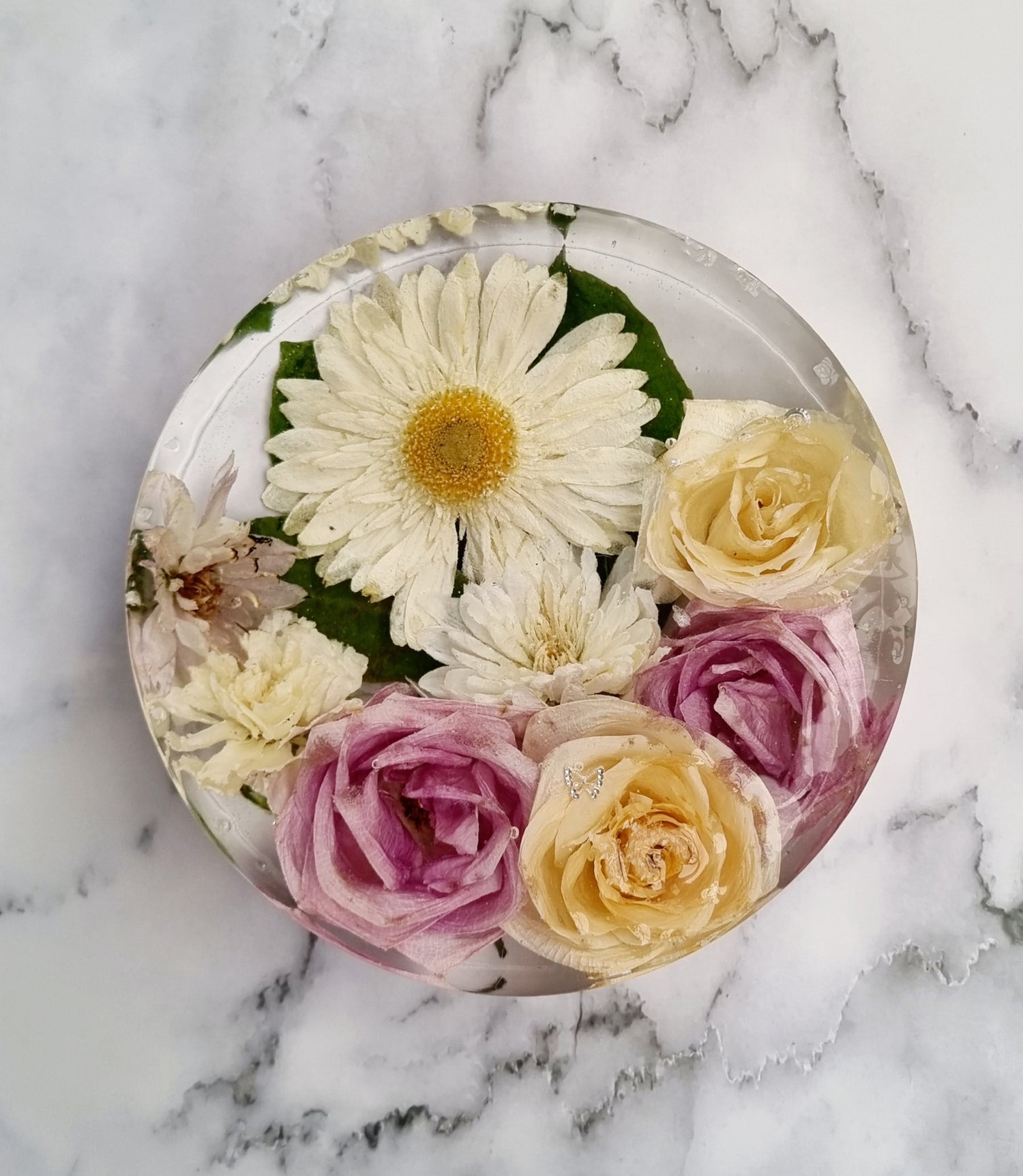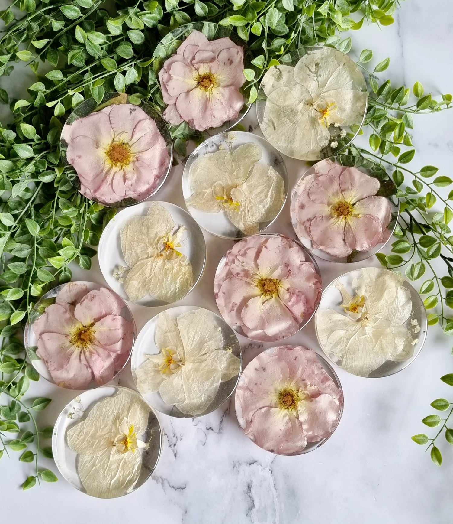 These coasters can fit majority of any flowers as long as it is able to be flattened.