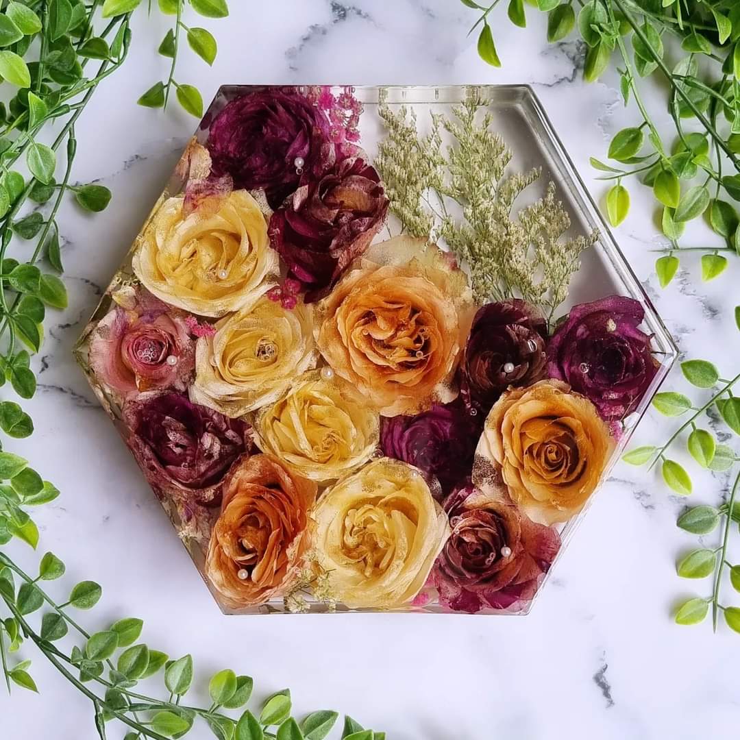 This piece can fit a few flowers and can also be an amazing piece for Newborn sentimental items for e.g Pregnancy test, umbilical cord, hospital bracelet + other items.